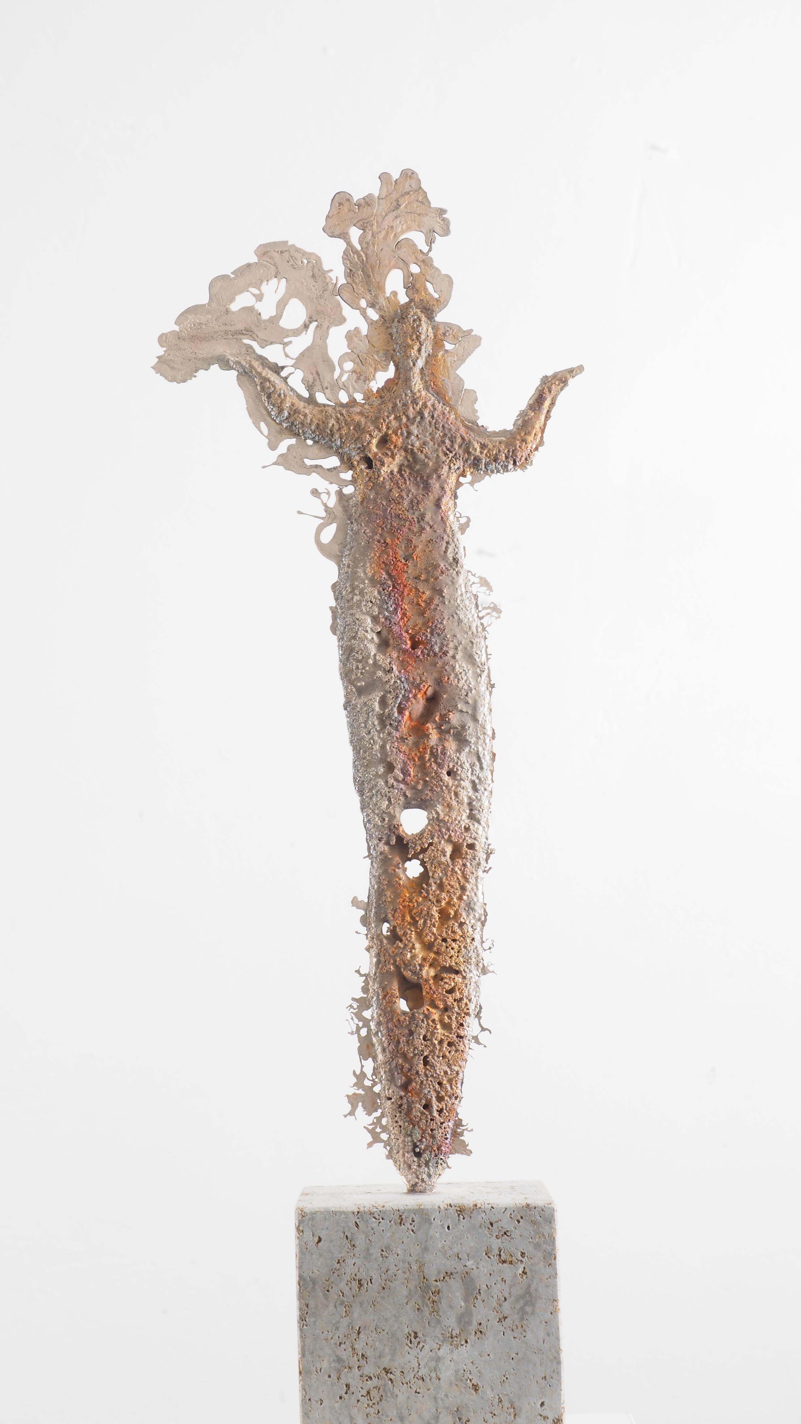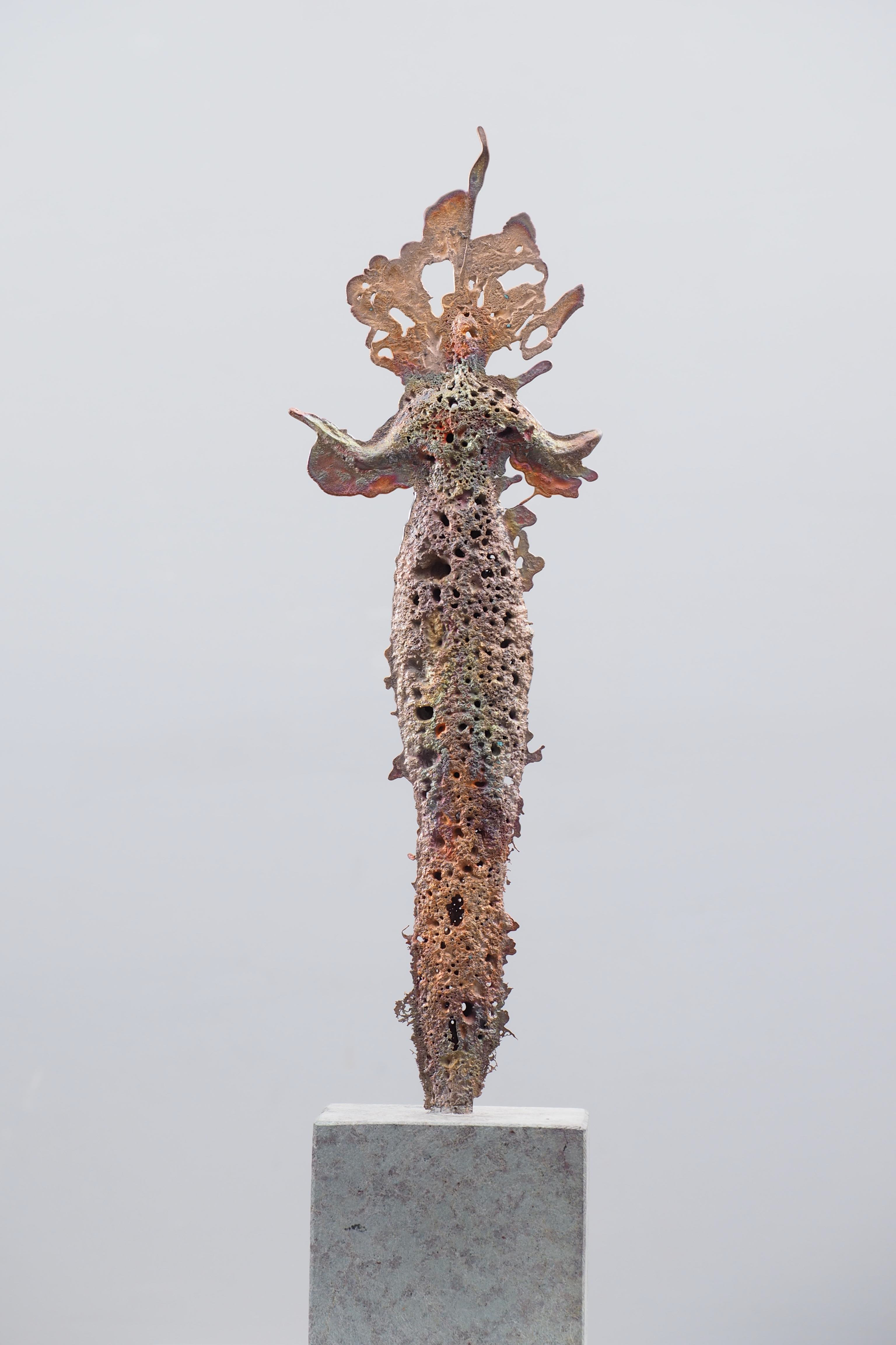 Sie entstehen in einem bronzezeitlichen Verfahren, das vor etwa 2.500 Jahren weite Verbreitung fand zur Herstellung von Pfeil- und Speerspitzen. Dabei wird die Bronze mit einer Temperatur von ca. 1.150°C in eine zweiteilige Steinform gegossen, aus der die Skulptur herausgearbeitet wurde.